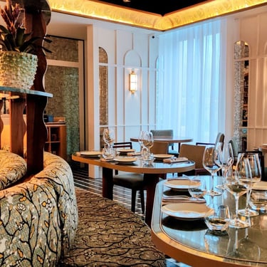 Exclusive silver-service dinner in a 1947 grand ballroom