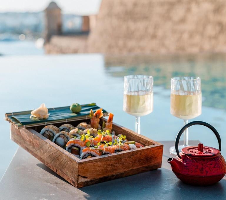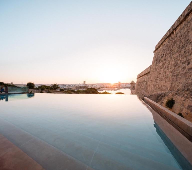 Iconic infinity pool nestled within historic fortification walls
